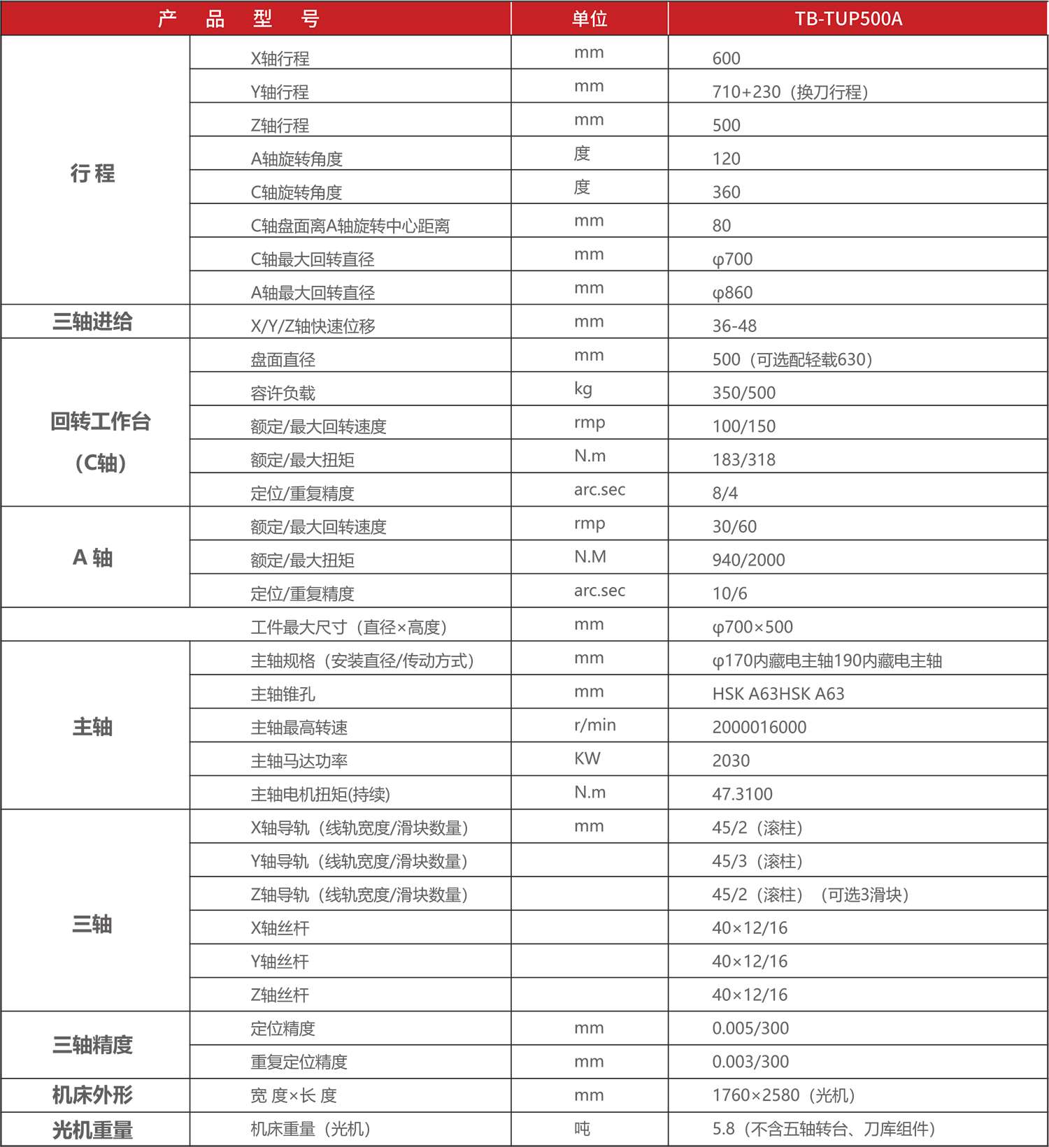 • 用于載重的工作臺固定于底座上只進行搖擺、旋轉運動,與三軸直線運動軸分離,三軸運動不受工件重量變化和轉臺旋轉慣量的影響聯動、跟隨精度高,可達到高穩定的加工性能;