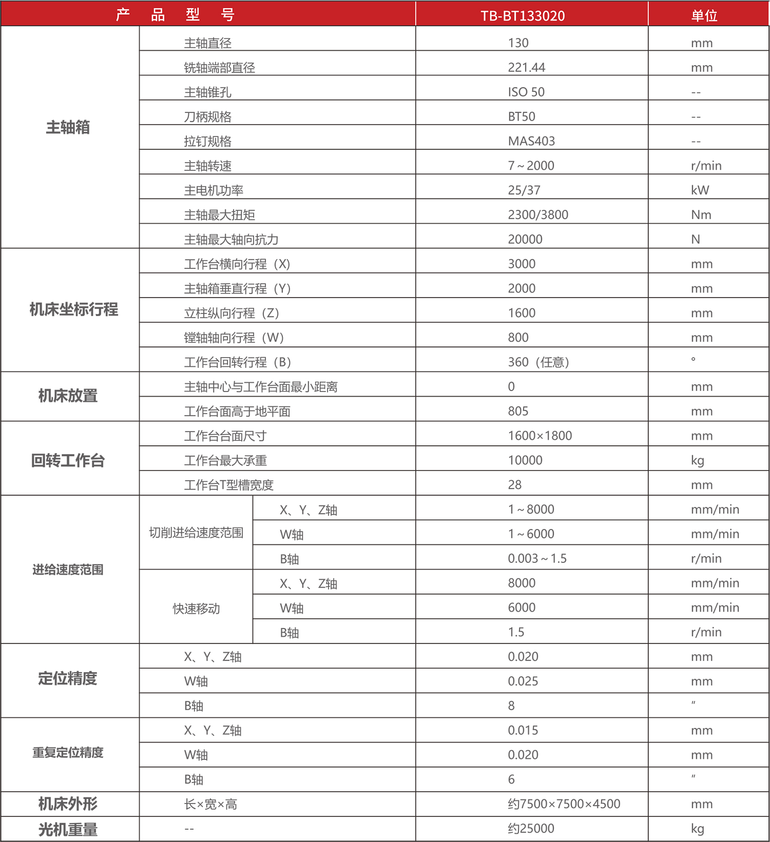 一次裝夾完成鉆孔、擴孔、鏜孔、切溝槽以及平面等銑削加工;用輪廓控制方法銑削斜面、框形平面、大孔端面、兩維、三維曲面及內外螺紋。回轉工作臺連續分度功能,可持續多角度加工工件。可選配多種功能附件,擴大加工范圍、提高加工效率。機床剛性好、精度高、操作方便、安全可靠,是重型機械、工程機械、機車車輛、礦山設備、大型電機、水輪機、汽輪機、船舶、鋼鐵、軍工、核電、環保等機械加工領域優選加工設備。