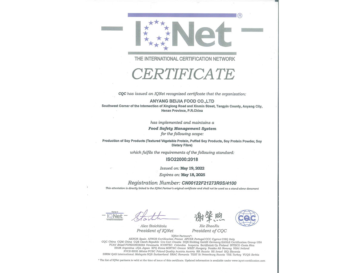食品安全管理體系認證證書